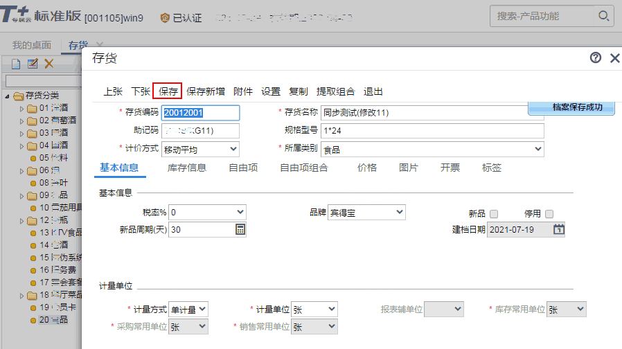 | 添加存货自动同步到其他账套。 |